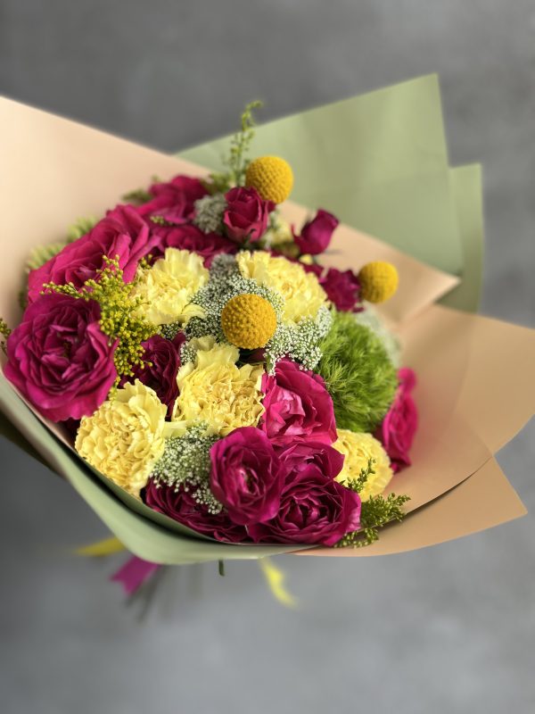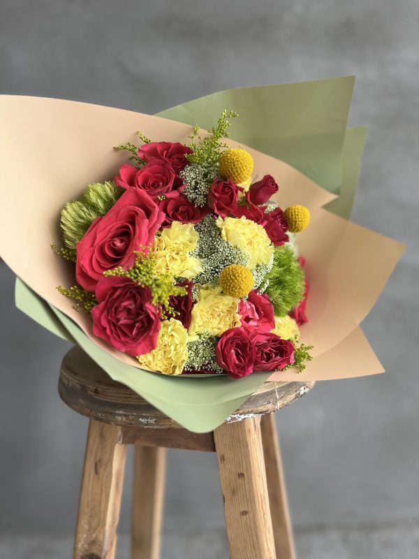 Un ramo que combina el brillo del amarillo con la suavidad del rosa en una armonía perfecta. Su diseño transmite alegría, ternura y calidez, ideal para regalar momentos de luz y amor.